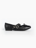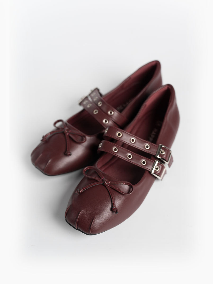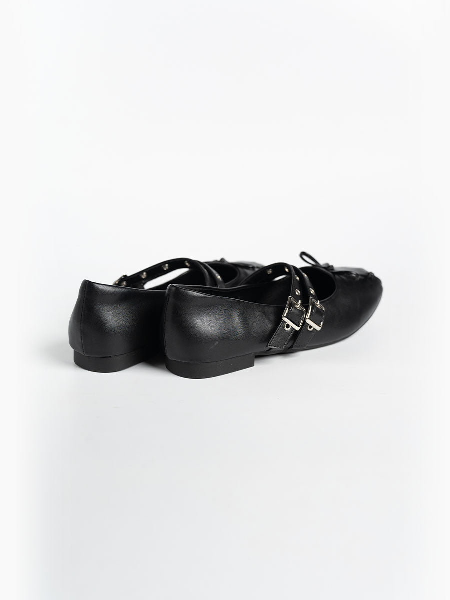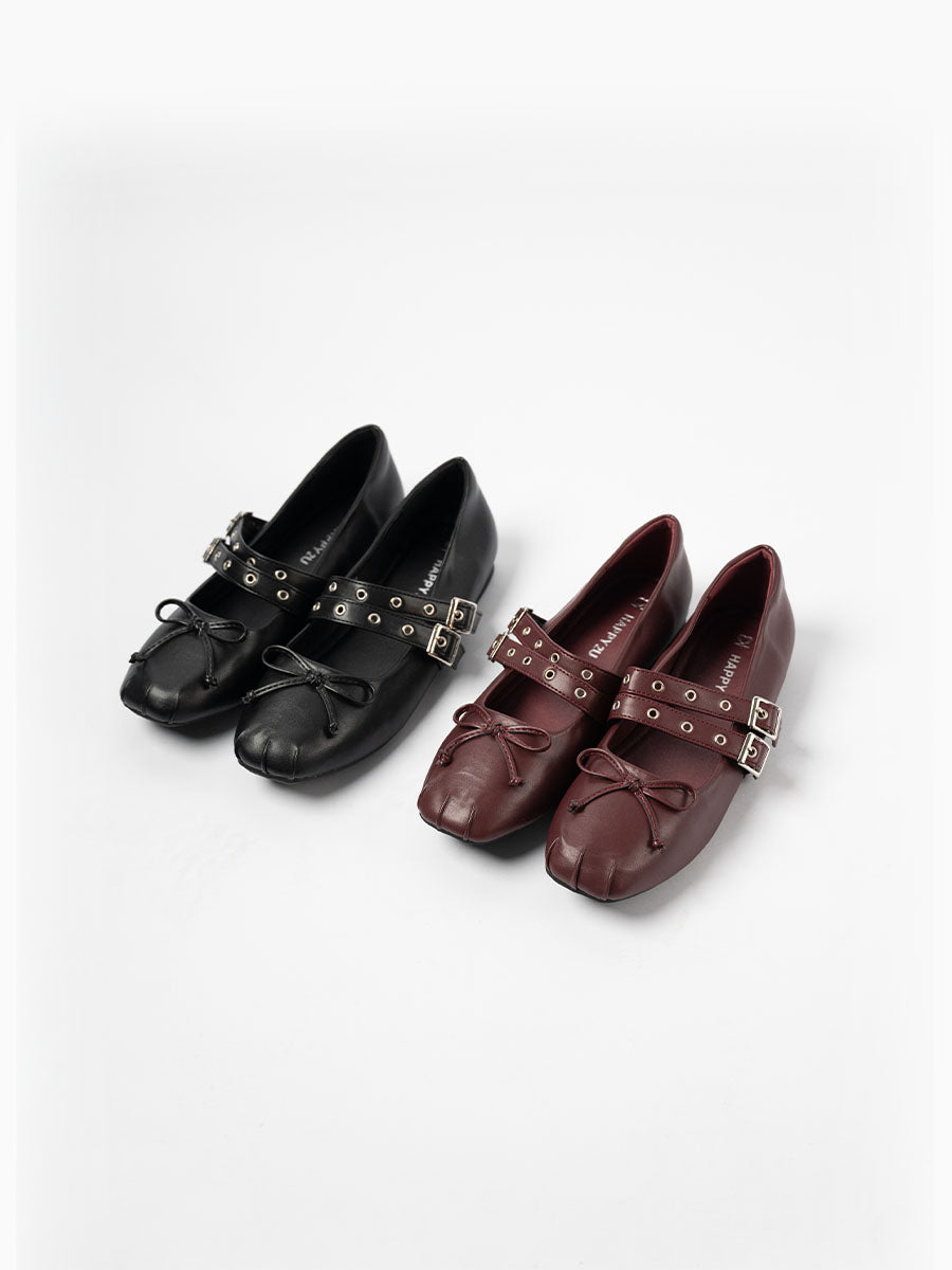 Make a statement with these eye-catching buckled Blake Double Strap Flats adorned with cute ribbon detailing that adds just the right touch of femininity. Crafted from soft leather, they offer a plush feel, while the adjustable eyelet strap ensures a secure and comfortable fit. The perfect blend of form and function, these flats redefine everyday sophistication with subtle artistry.