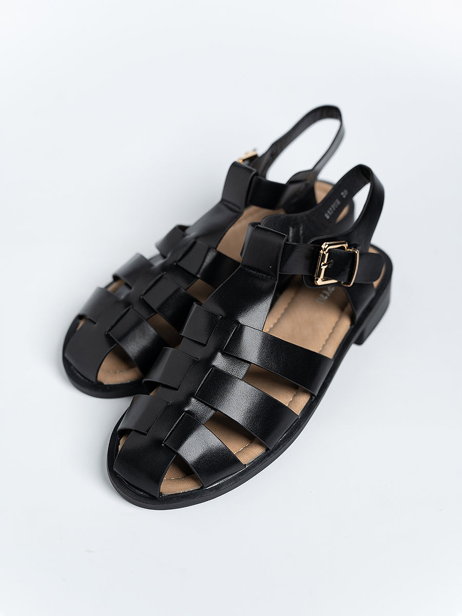 The Felipe PU Cage Sandals are inspired by traditional fisherman styles, crafted from high-quality PU leather and designed with adjustable ankle buckles for a secure fit. Featuring lightly padded insoles, these sandals promise all-day comfort while keeping your look effortlessly chic.