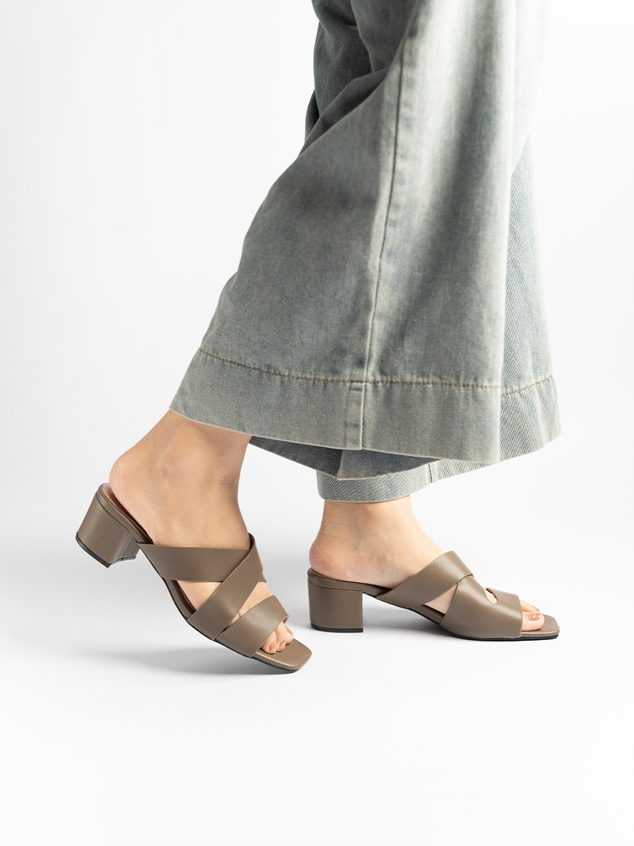 Introducing this season's favourite sandal heels - Jessica Mid Heel Mules. Set on 5.5cm mid heels and featuring an open-toe design, they are the perfect staple heels for stylish women. We uplift the look by featuring a chic cross strap design at the front arch of the sandals. Crafted from high-quality leather, Jessica offer durability and a timeless look, perfect for any casual outing. Elevate your summer wardrobe with this versatile footwear that pairs beautifully with shorts, dresses, or beachwear.