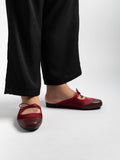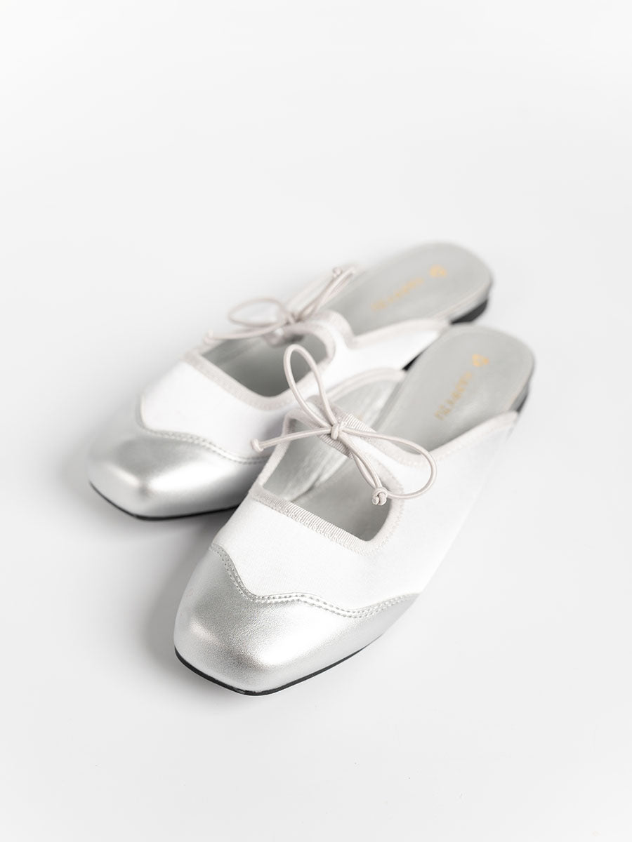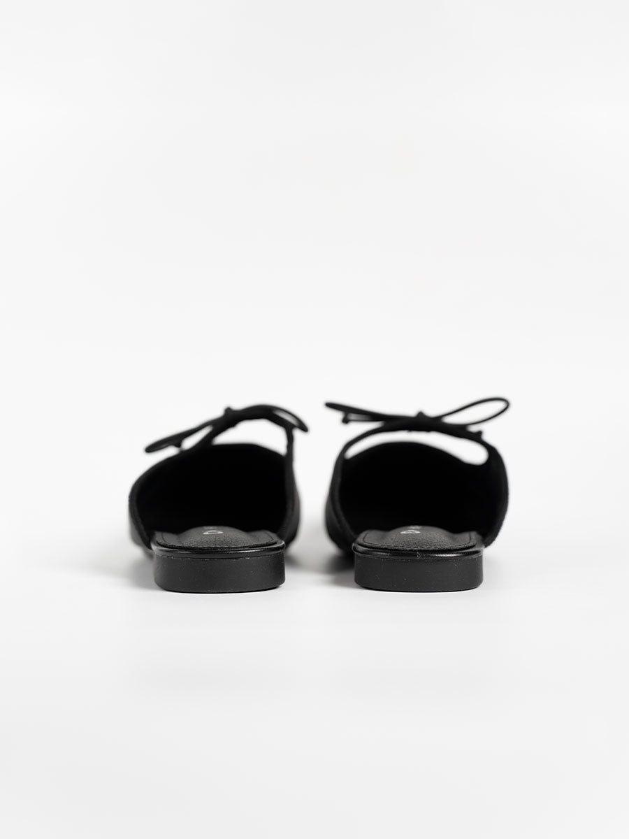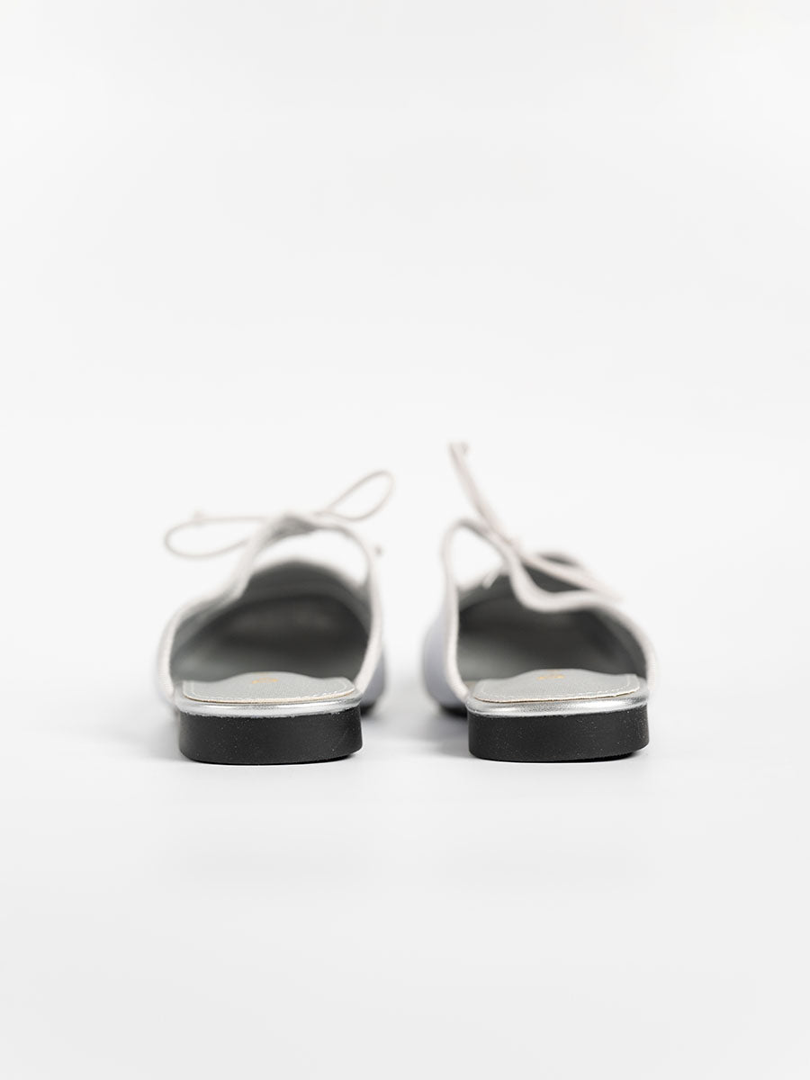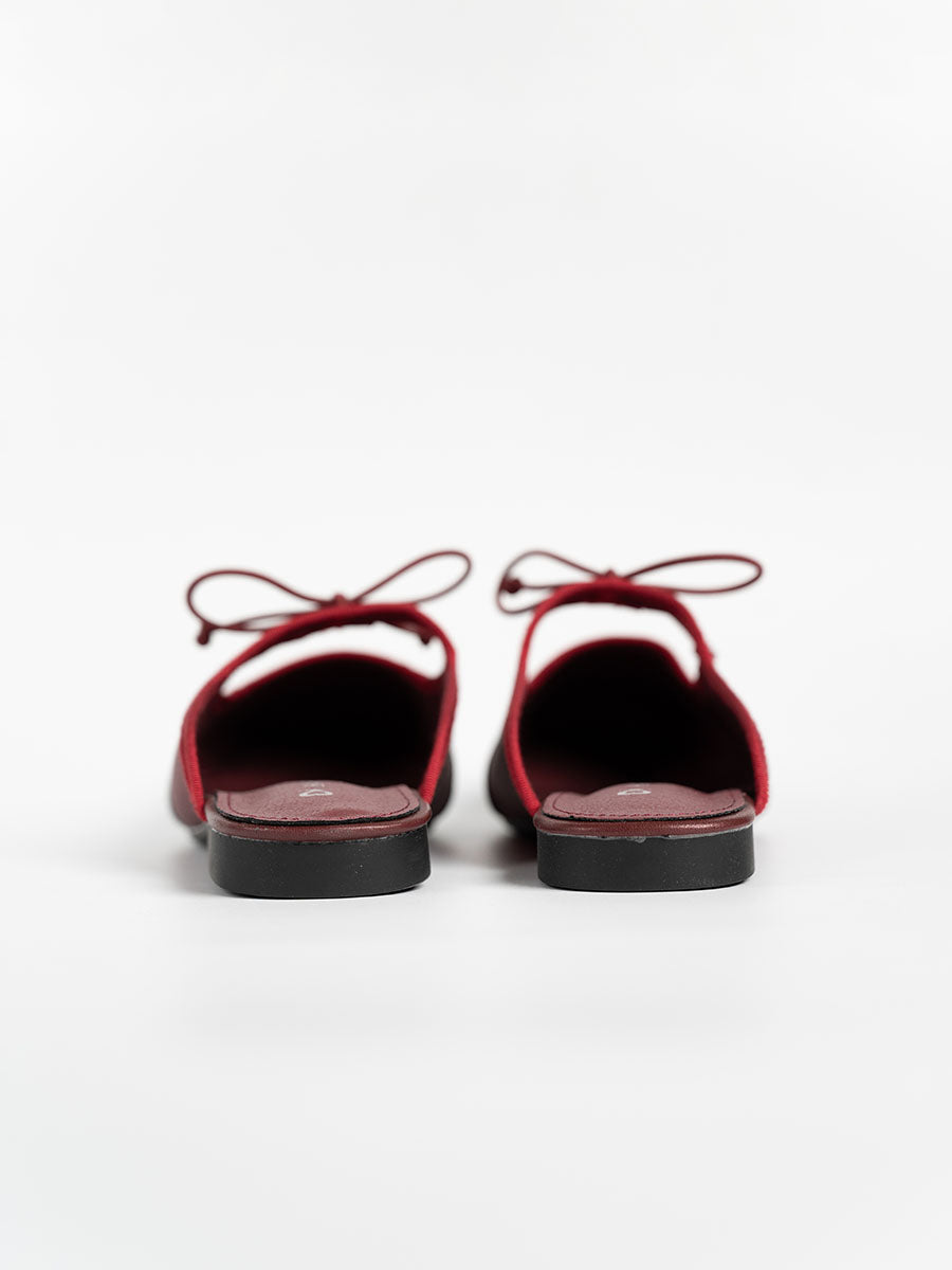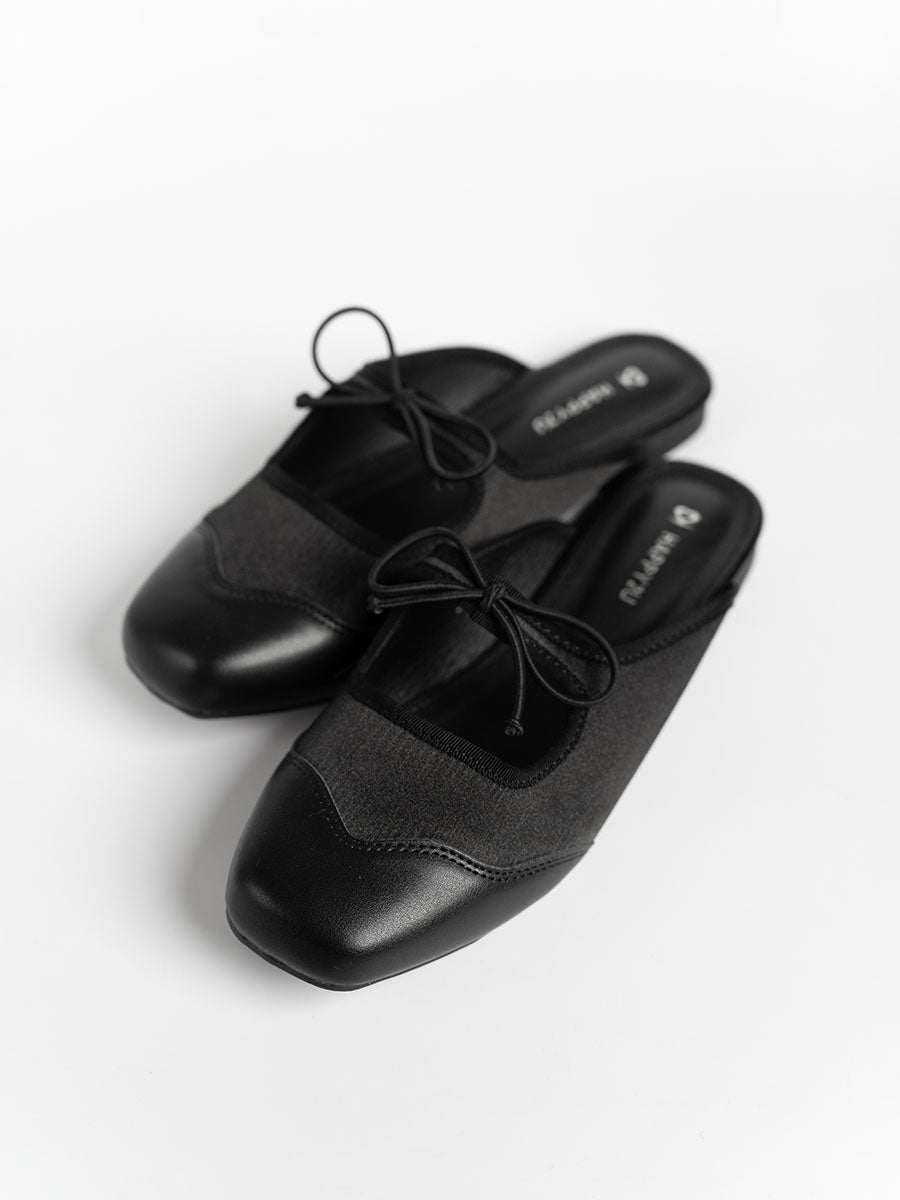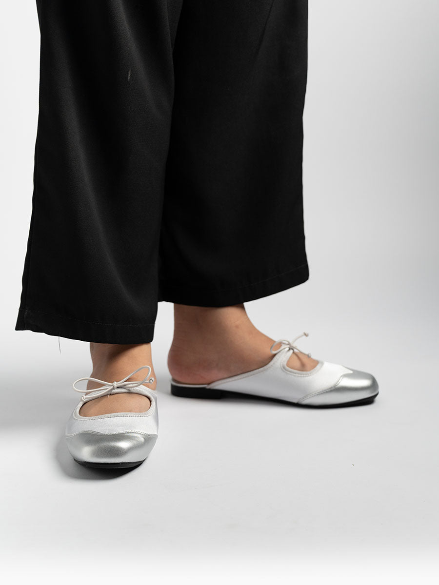 Crafted from soft satin and PU- leather, these luxurious Remy Ribbon Flats yet simple mules feature subtle stitching that highlights their refined design. It is also adorn with cute ribbon knots at the arch to complement the look. This pair offers an understated yet stylish finish perfect for both casual and polished outfits.