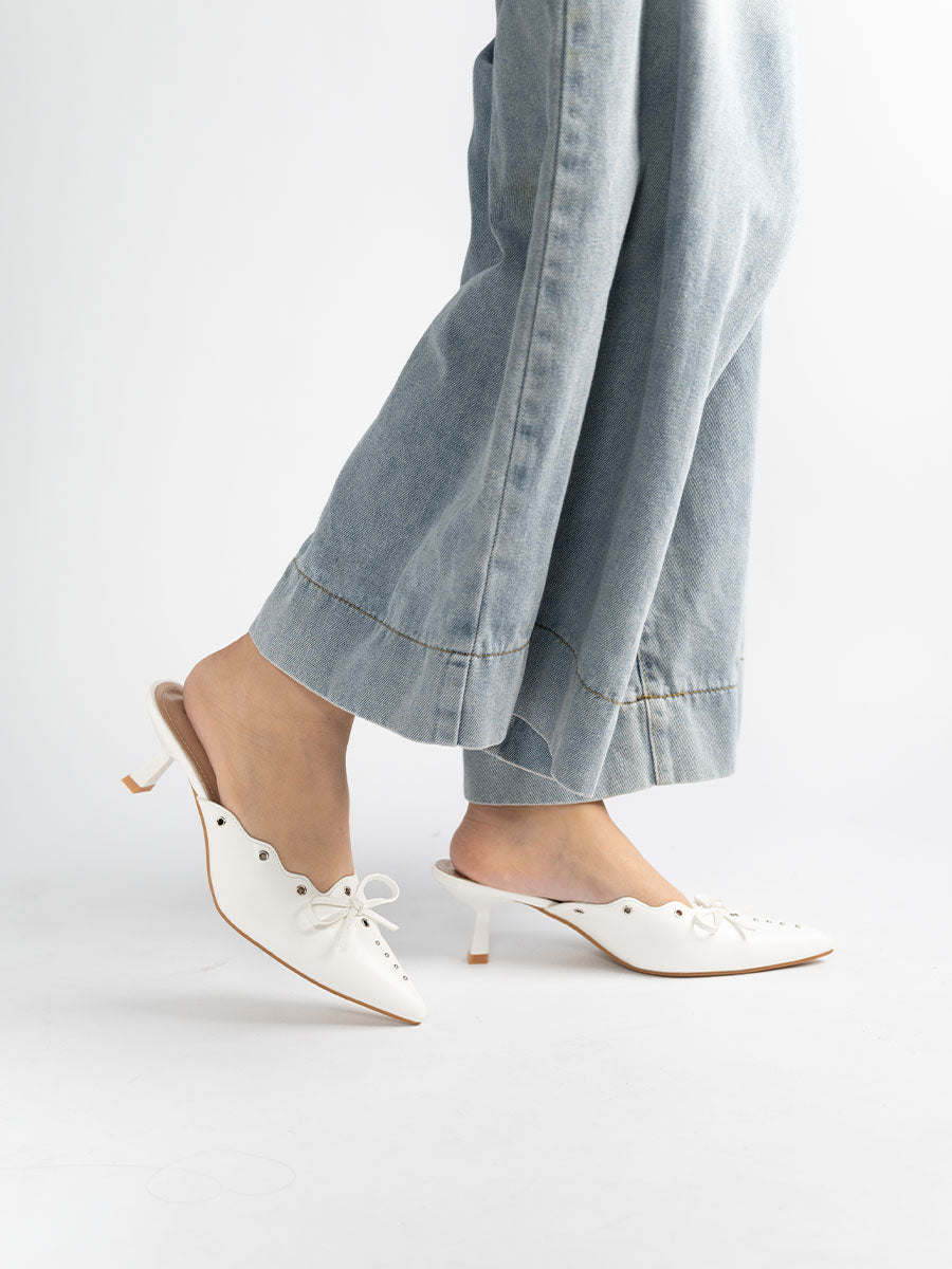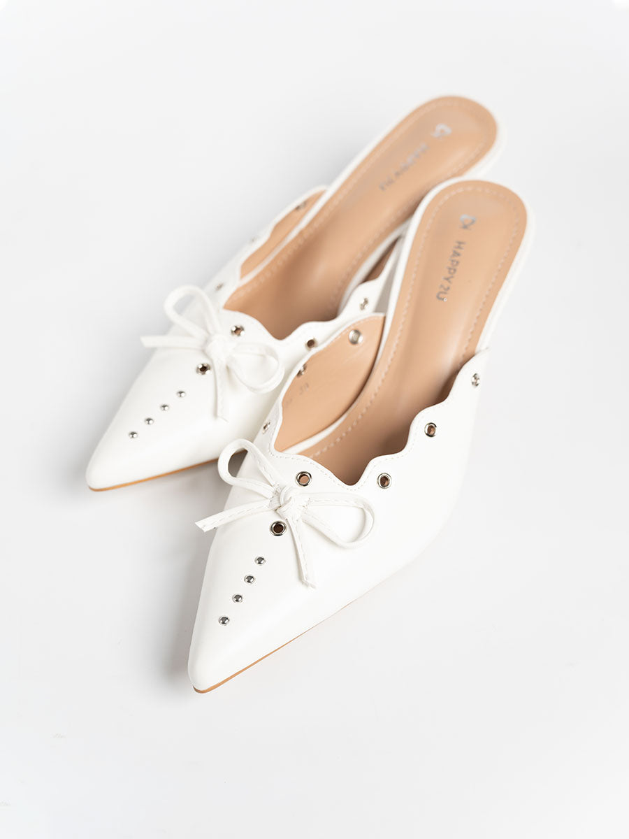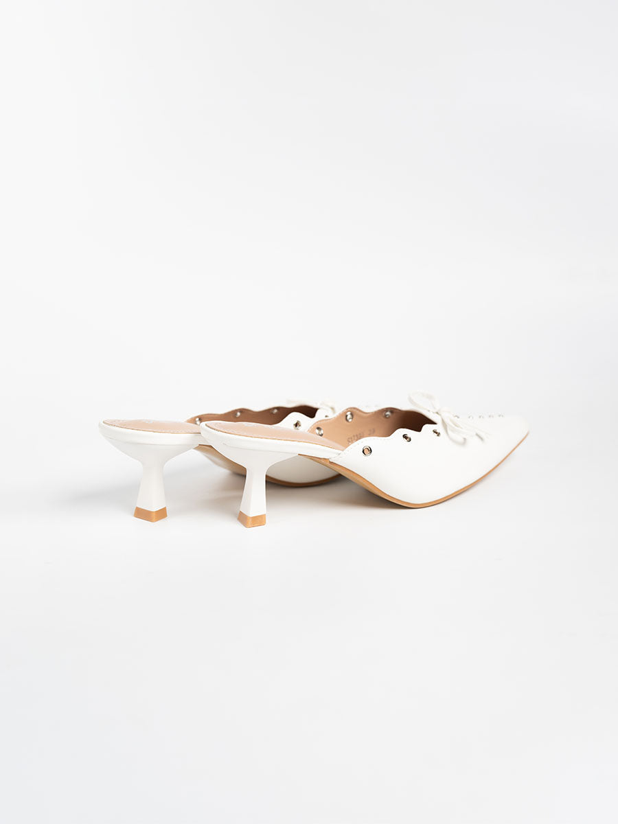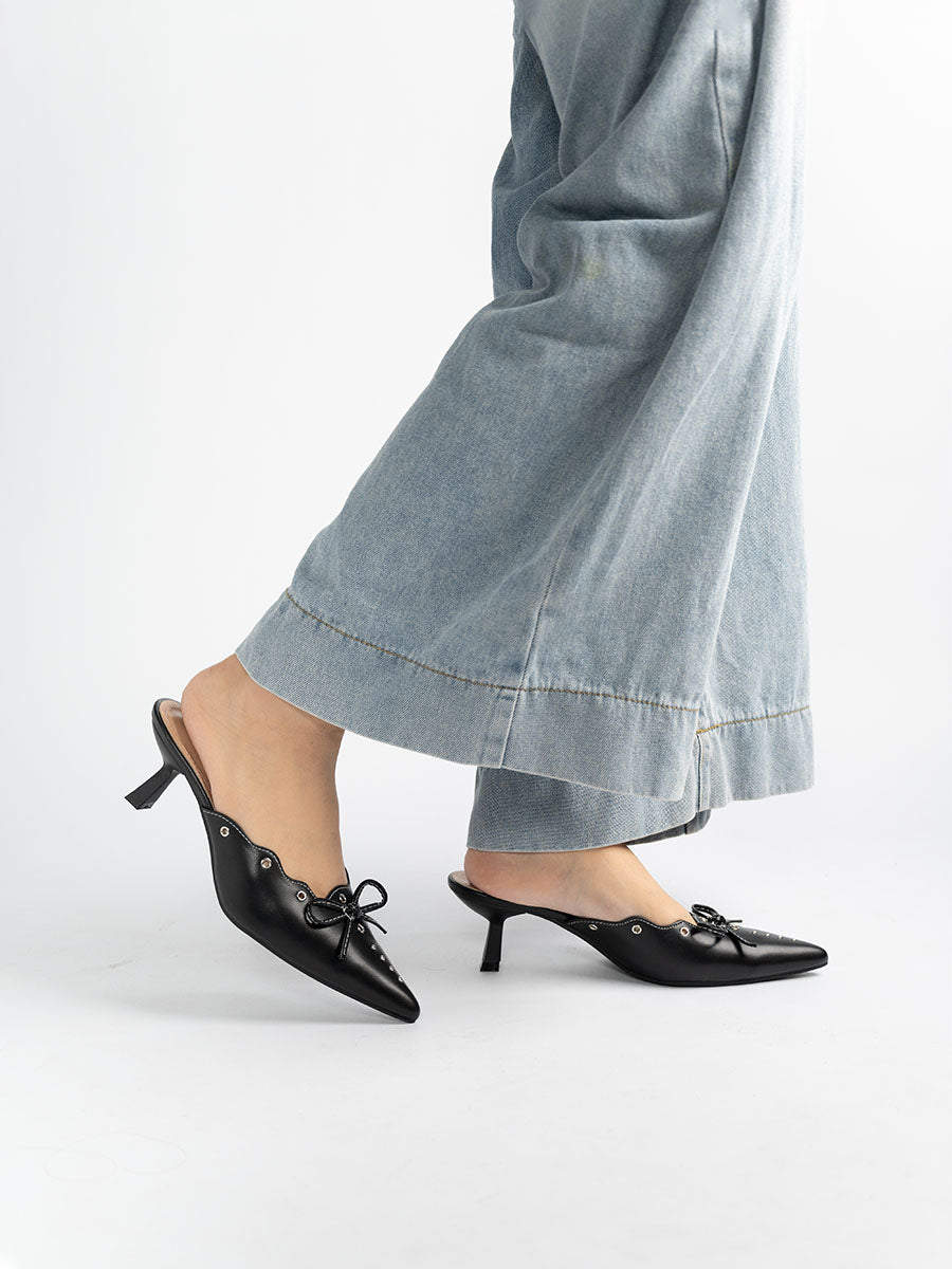 Stand out from the crowd in effortless elegance with our Scallop Eyelet Mule Heels — where timeless charm meets modern flair. Featuring delicate eyelet details and subtle ribbon accents, these mules radiate understated sophistication. Designed with ultra-thick insoles for lasting comfort and support, they’re perfect for all-day wear. From work meetings to evening gatherings, these heels transition seamlessly, keeping you stylish every step of the way.
