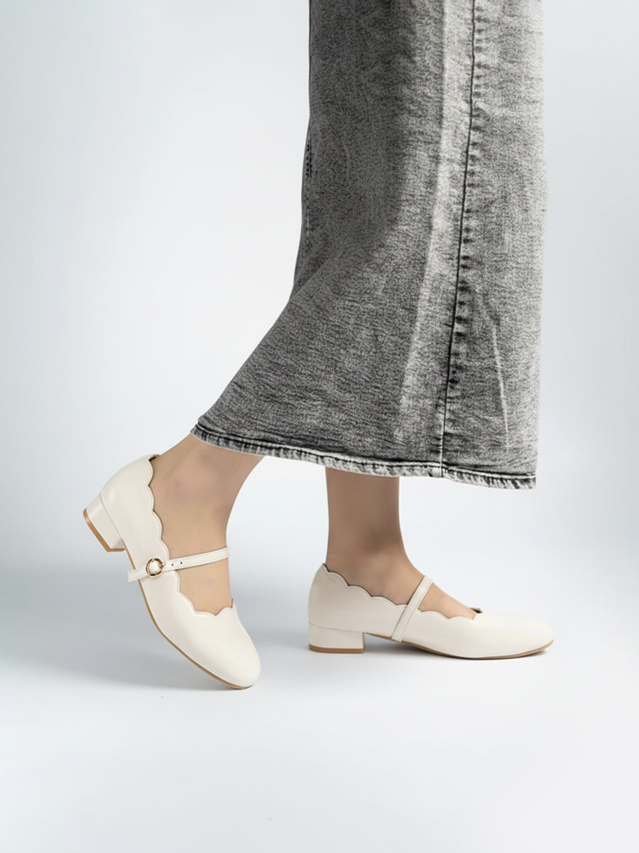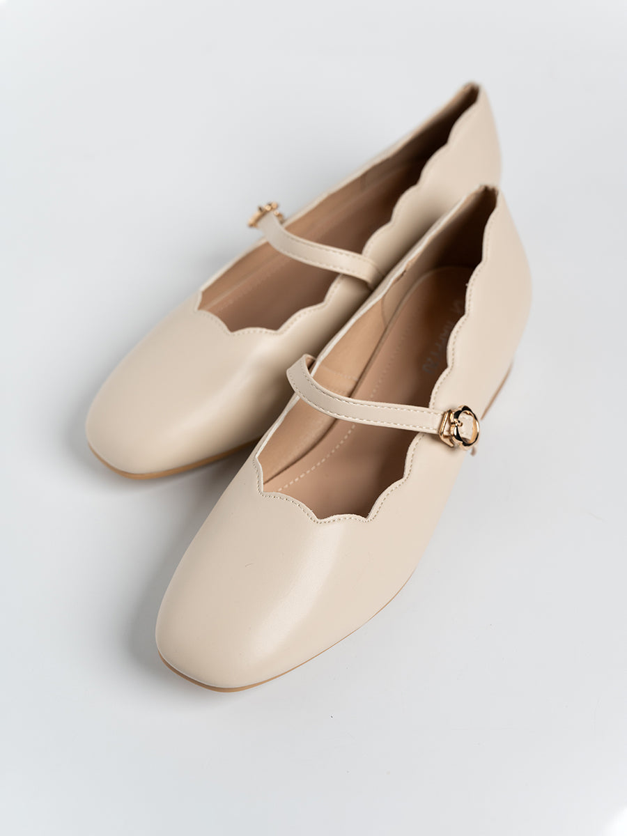 Scallop Glossy Mary Jane is the perfect partner to a wide array of ensembles. Having a comfy padded insole and heels that are not too high plus slip on feature make it the easiest and comfortable shoes to wear for every walk of life. It comes with 3cm heels and 2 basic neutral colors for you to match with your outfit. Take-charge and stay in command while still presenting a touch of femininity.