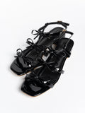 Elevate your day-to-night look with the versatile and chic Viola Triple Ribbon Sandals. Effortlessly matching any outfit, these flats feature elegant glossy ribbon on the front arch with eye and a semi-square toe silhouette for wide feet comfort. Crafted from glossy leather, they offer exceptional comfort for your feet all day long. These flats will become a timeless staple, perfectly complementing all your attire for the day!