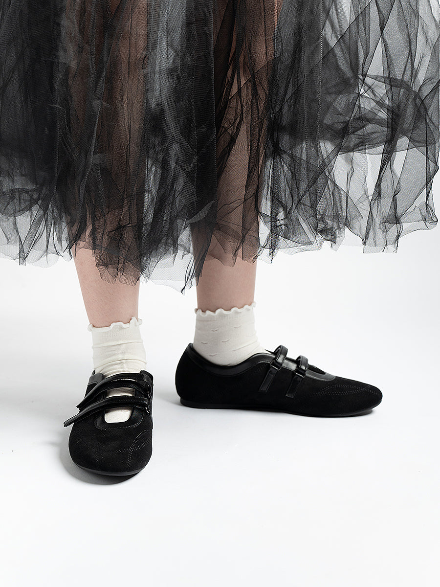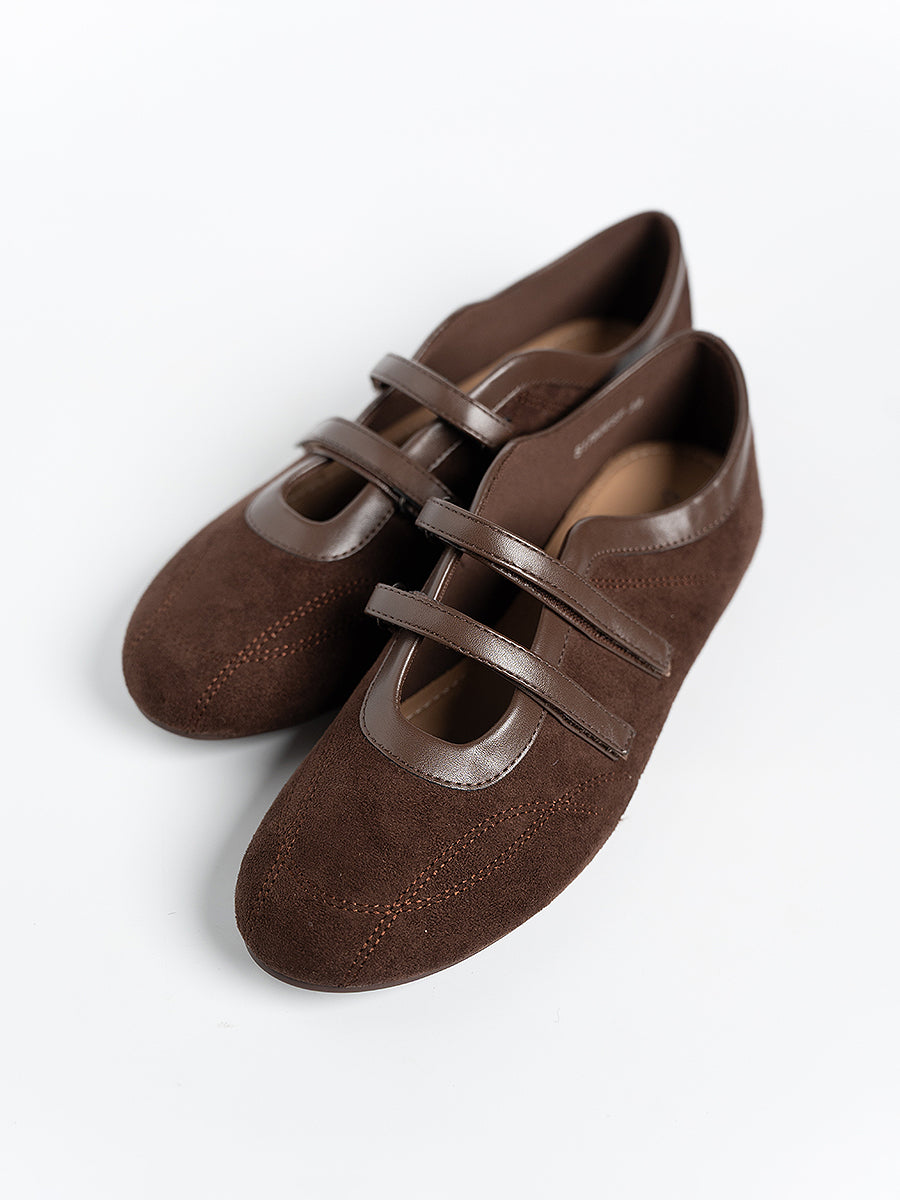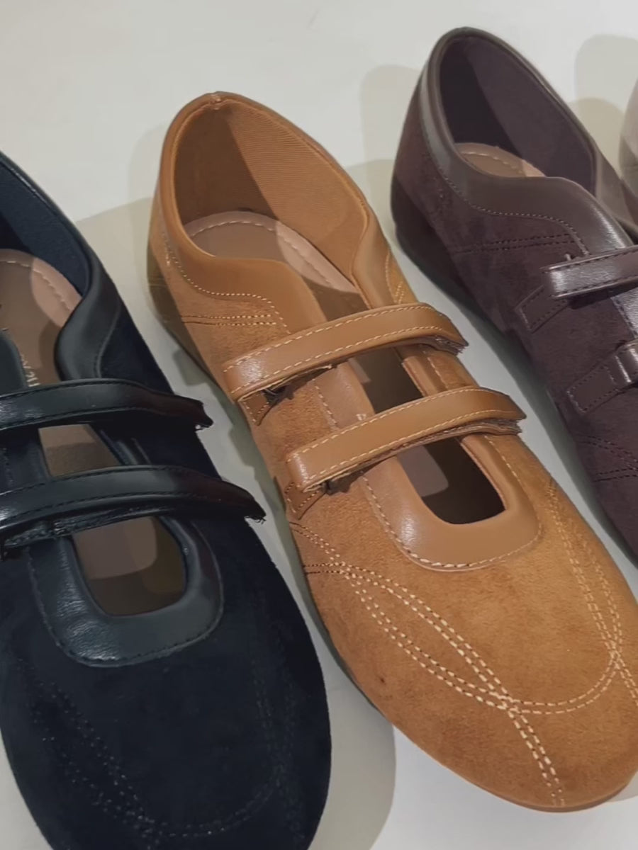 Voline Suede Flats: A suede reinterpretation of our signature Sport Ballerina, designed with a clean, minimal mood for everyday wear. Crafted from a refined blend of soft suede and smooth faux leather, this pair delivers a warm, polished aesthetic. Delicate stitching details highlight the classic round-toe silhouette, adding subtle character while maintaining effortless simplicity.